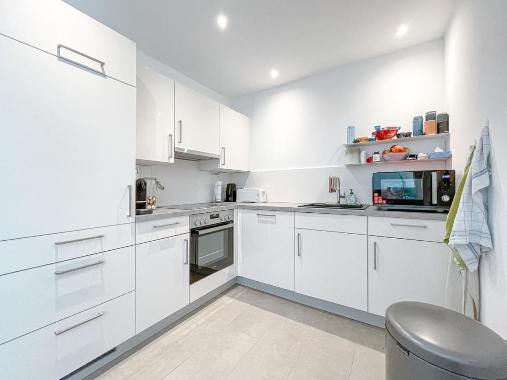 Auf ca. 47m² Wohnfläche eröffnet sich ein offenes und lichtdurchflutetes Wohnkonzept. Der Wohn /Essbereich mit integrierter, moderner Einbauküche bietet Platz zum Kochen, Essen und Entspannen. Von hier aus gelangen Sie direkt auf die überdachte Terrasse und den anschließenden Privatgarten mit rund ca. 21m² – ideal für sonnige Stunden im Grünen, ob mit Kaffee oder einem guten Buch.
