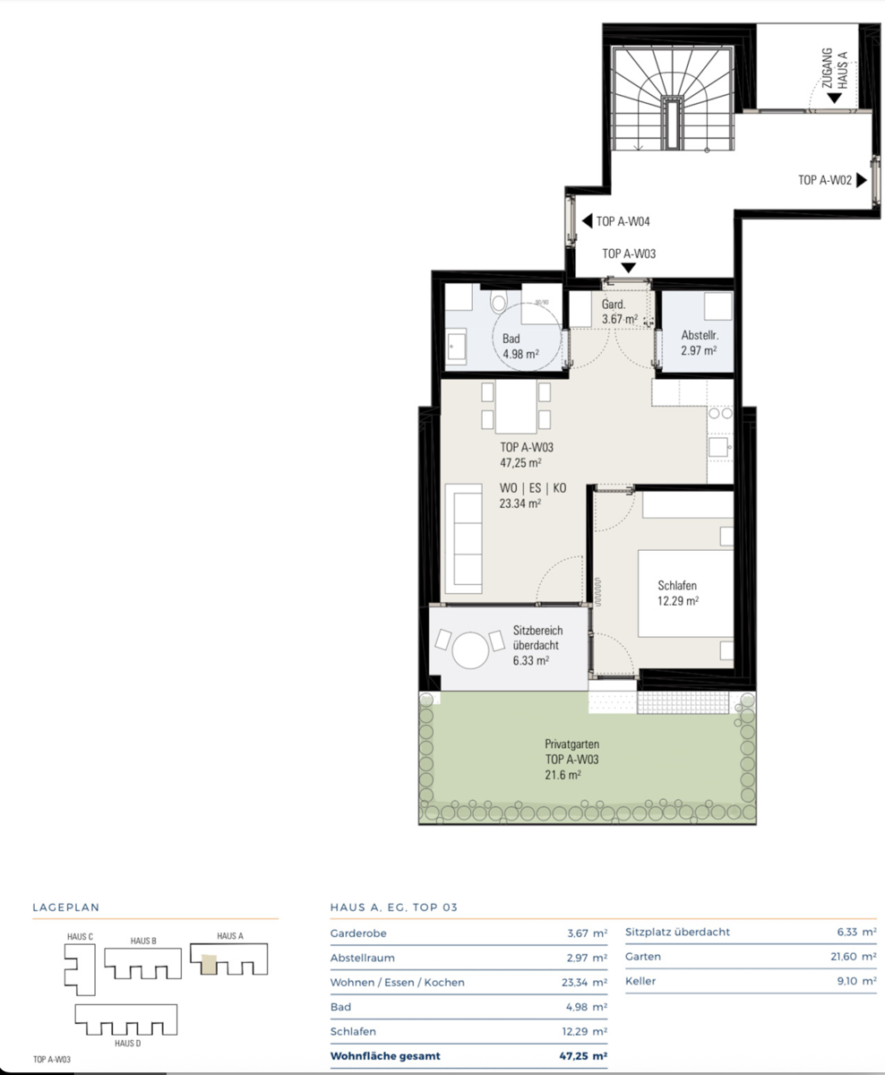•Außenfläche: Terrasse: ca. 6,33 m², Garten: ca. 21,60 m²