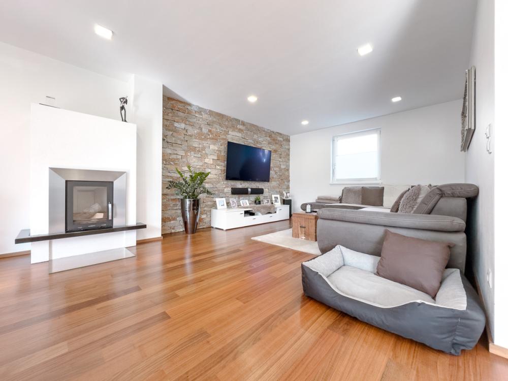 •Besonderheiten: Kamin im Wohnzimmer, dimmbare LED-Beleuchtung, Dan-Küche, Steinwand im Wohnbereich